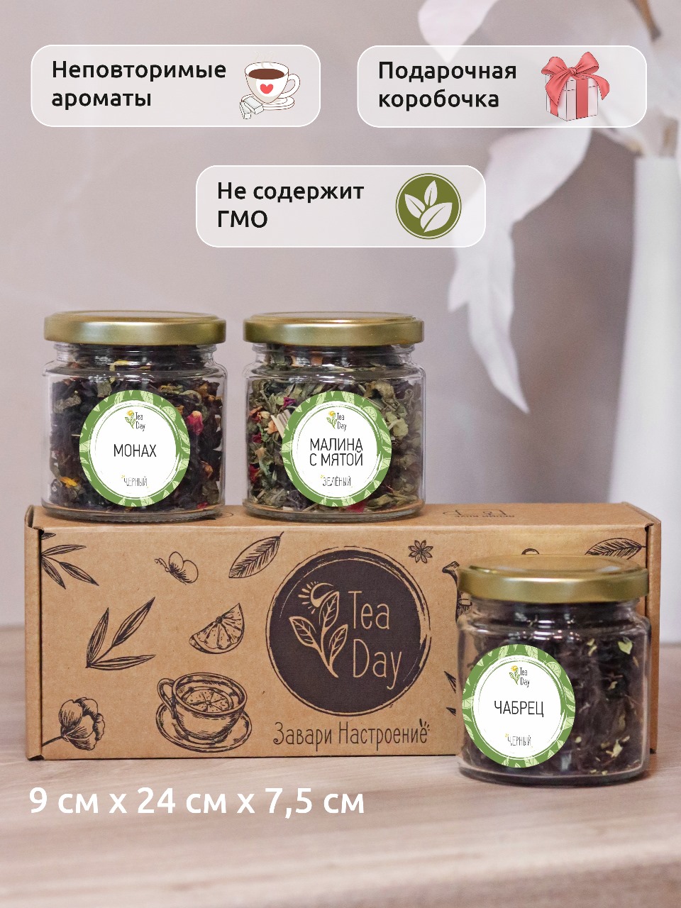 Набор из 3-х видов чая "Летний луг". В наборе 3 вида чая по 50 грамм в стеклянных баночках и подарочной упаковке.