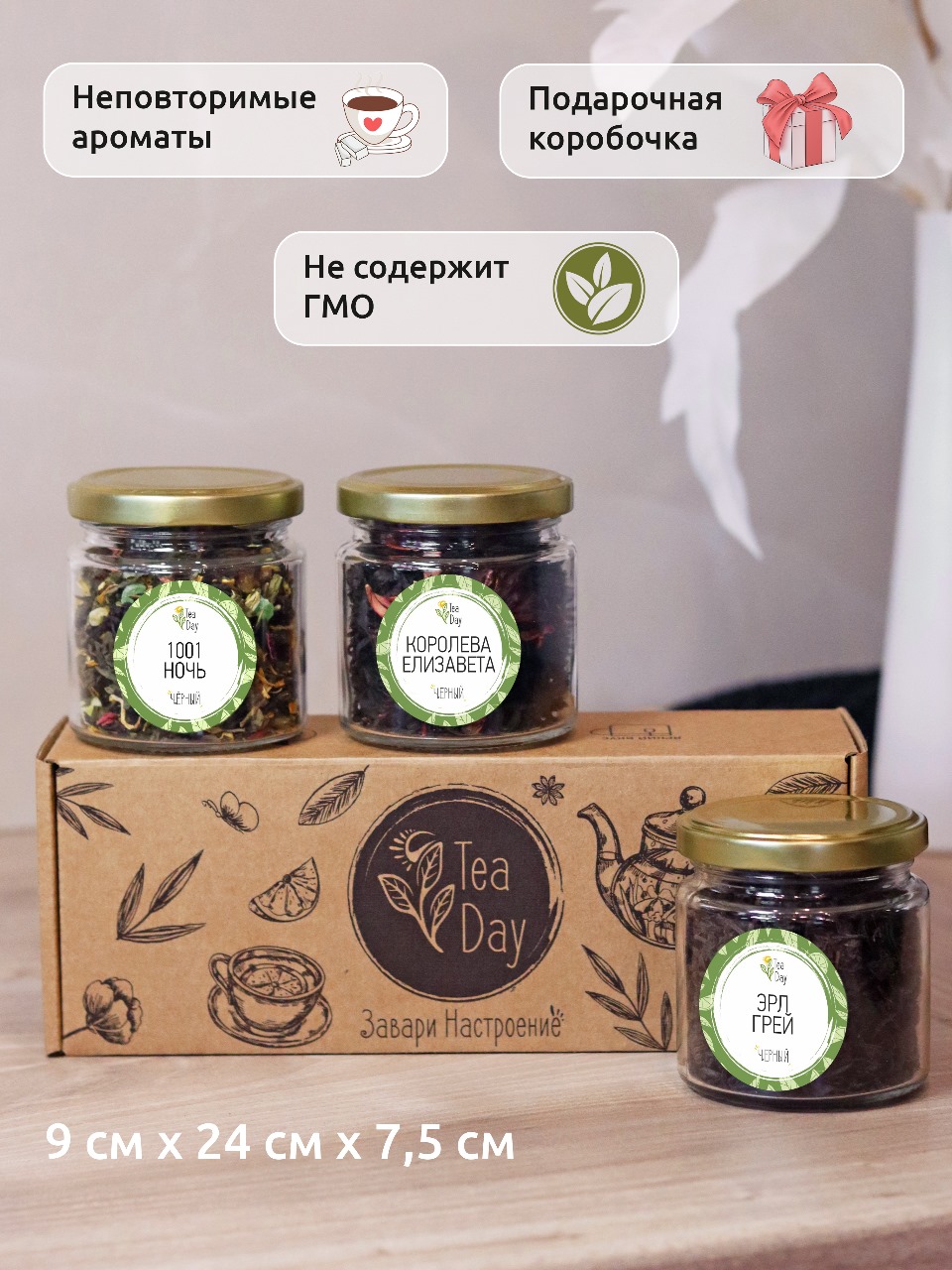 Набор из 3-х видов чая "Вечерние тайны". В наборе 3 вида чая по 50 грамм в стеклянных баночках и подарочной упаковке.